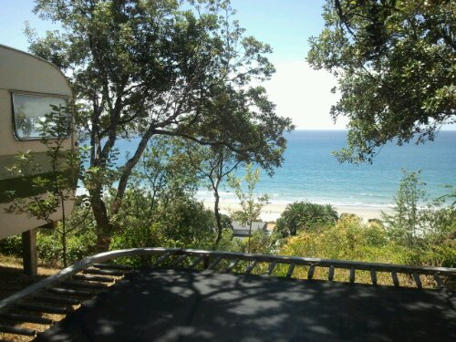 Die Fähre von Auckland bringt mich angenehm nach Matiatia. Ich nehme den Bus und bin eine halbe Stunde später in Onetangi. Brett und Hayley quartieren mich im Wohnwagen samt Trampolin oben auf der Klippe ein. Yeah.