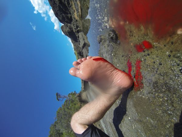 Die Muscheln auf den Felsen sind zum Teil ganz schön scharfkantig, aber Sonne, Salzwasser und ein Pflaster aus Seetang heilen in kürzester Zeit alle Wunden.