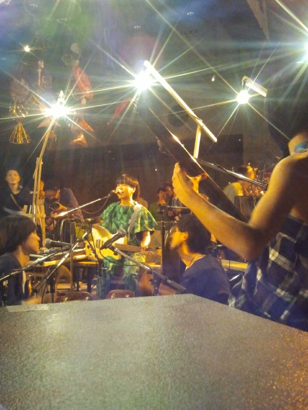 Danach treten die mir bis dato unbekannten OOIOO auf, die Bühne ist kreisförmig und in der Mitte des Raums. Irre Sounds zwischen J-Pop, Gamelan, Jazz und Noise.