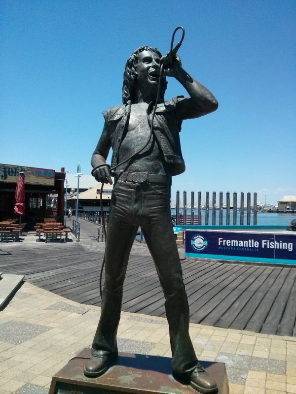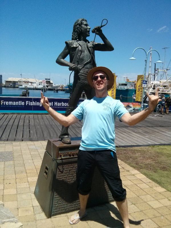 Greg, Nik und ich fahren eine halbe Stunde nach Süden und landen in der angenehmen Studentenstadt Freo. Der Record Finder ist ein prima Plattenladen, ausserdem besuchen wir das Shipwreck Museum und die nahe gelegene lebensgrosse Statue des zwergenhaften Giganten der Rockmusik Bon Scott und den karibisch anmutenden South Beach. Schick.