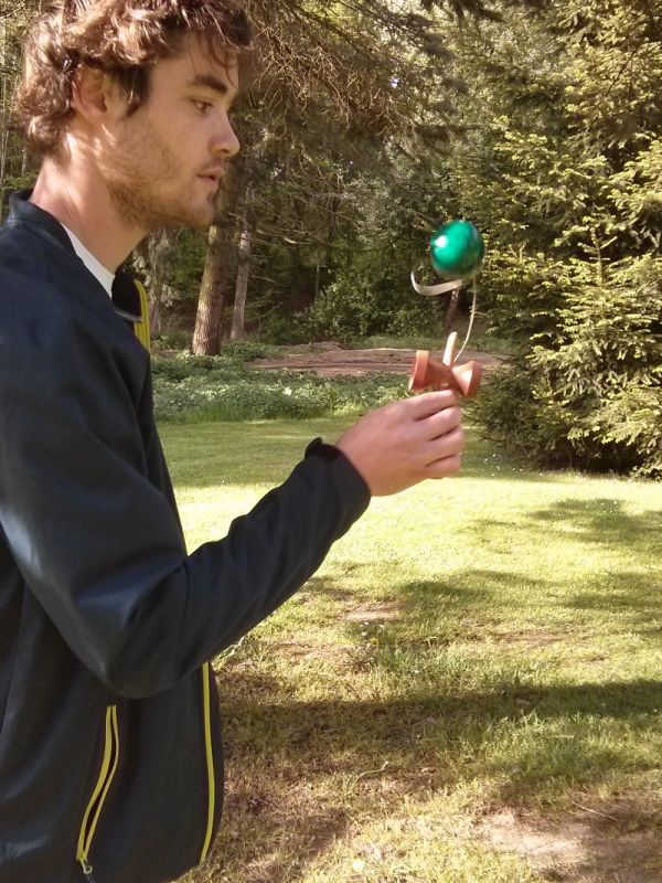 Freitagnachmittag beobachte ich den ehemaligen Jojo-Weltmeister Honza beim lockeren Zocken. Der Hammer! Seine Kumpels Sasa und Jakub beeindrucken zusätzlich mit dem japanischen Geschicklichkeitsspiel Kendama.