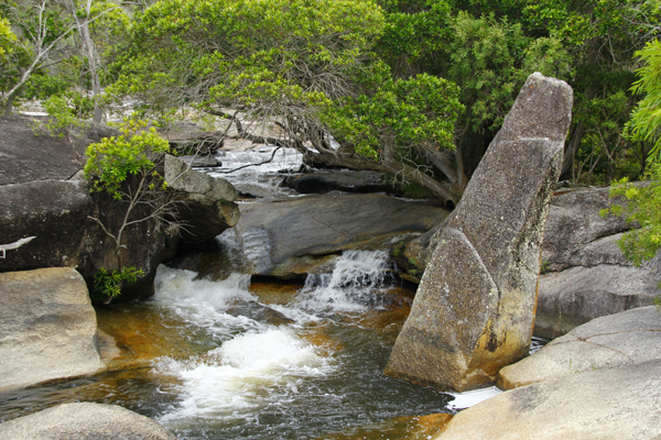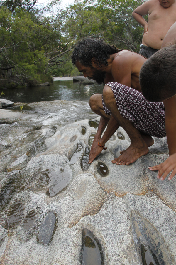 Ich fahre über die Development Road durch die Tablelands durch Mount Molloy über Mareeba bis nach Davies Creek Falls und kühle mich in aufgestauten Pools etwas ab. Dort lerne ich Willy kennen, der mir die alten Werkstätten seiner Vorfahren zeigt, wo sie Steinäxte und Messer herstellten.