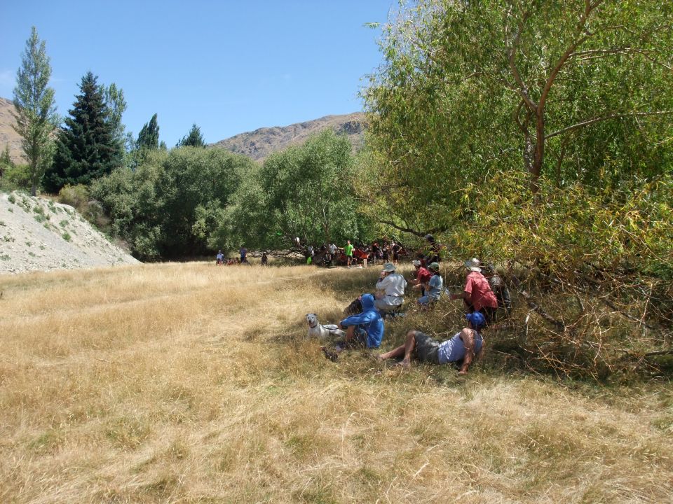 Sonntagmorgen finde ich mich nach etwas wenig Schlaf bei besten Konditionen in der ersten Gruppe mit Brady Kuech, Simon Feasey und dem in der Open-Division spielenden Junior Ben Wiel-Lake wieder. Brady wirft konstant gut, muss aber etwas Vorsprung abgeben und liegt nach der Runde zwei Zähler vor Ben und mir, Simon befindet sich einen Stroke dahinter und ich ergattere sein höchst begehrtes Bag Tag #1. Es ist noch brüllend heisser als am Vortag und der eiskalte Shotover River ist abermals die ersehnte und willkommene Abkühlung nach der Runde.