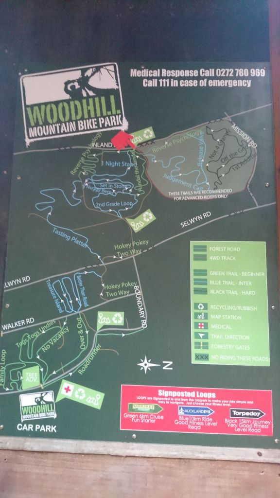 Gabb, Marty und Virgil haben mich geschickt weg vom ebenfalls in Woodhill gelegenen Disc Golf Park zum Mountain Bike Park bugsiert. Es ist ein grosser Spass, vor allem die Downhill-Strecken im Wald. Nicht ganz so witzig wie die Abfahrten sind die darauf folgenden langen und langsamen Aufstiege, aber hey!