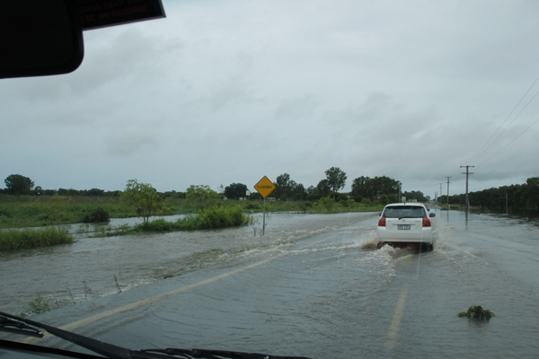 Südlich von Townsville waren gleich mehrere Strassen gesperrt, nach ein paar Umwegen komme ich doch noch zu einer Auffahrt auf den Bruce Highway. Ich fahre mehrfach durchs Wasser und komme ein paar Hundert Kilometer südlich für die Nacht auf dem Campingplatz von Clairview unter.