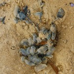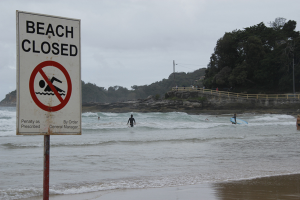 Sydney hat mehrere Stadtstrände, der bekannteste ist Bondi Beach. Bei gutem Wetter der Poserstrand schlechthin, aber das gibts ja zur Zeit nicht, dementsprechend leer bzw angenehm ist der Strand selbst, die Strasse dahinter ist allerdings gespickt mit Tourifallen. Ein bisschen südlich davon ist Tamarama, viel kleiner, bestimmt nicht schlecht, aber leider gesperrt. Ich fahre durch den Tunnel in den nördlichen Teil von Sydney nach Manly Beach, hier soll das Surfen ganz okay sein. Dummerweise findet heute eine Blue Bottle Invasion statt, die Dinger sind bei uns als Portugiesische Galeeren bekannt und supergiftig, arrrh! Später erfahre ich, dass ca 600 Leute allein in Manly Beach nach dem Schwimmen ärztlich behandelt werden mussten.