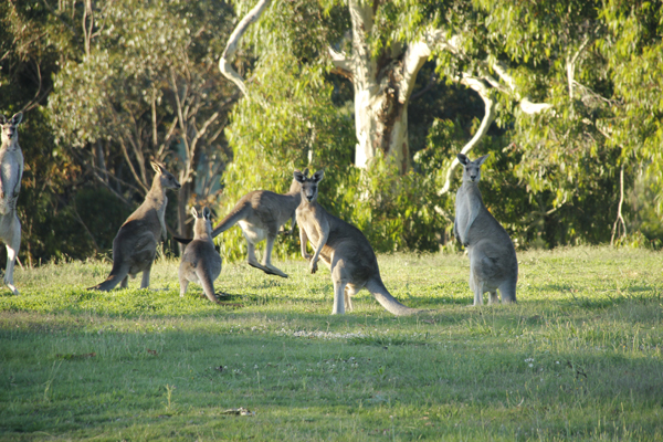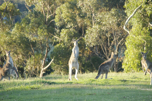 Es ist richtig heiss und trocken, am frühen Abend erscheint dann noch eine Gruppe Känguruhs und beobachtet mich mit leicht desinteressierten Blicken beim Putten um dann noch cooler davonzuspringen. Ich zocke zwei Runden und spiele -5 und -2, tralala!