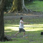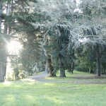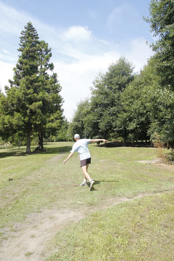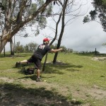 Ich folge dem frischgebackenen Open Champion Dean nach Tauranga, wir laden die Körbe in seiner Garage aus und zocken danach noch eine entspannte Runde am späten nachmittag unter den gigantischen Bäumen in Yatton Park, it´s Disc Golf galore!