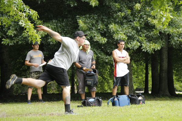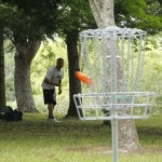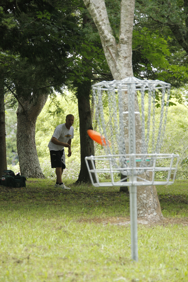 Ich mache mich dafür aber auf den Weg nach Pukete Farm Park nördlich von Hamilton, dort finden am Wochenende die 2011 New Zealand Disc Golf Championships statt. Der Organisator Bob hatte sich auf meine E-Mail-Anfrage zurück gemeldet, ich kann und soll doch bitte gerne rumkommen und mitspielen. Der coole Kurs hat 18 Bahnen, alle Löcher sind Par 3, die Körbe sind teilweise ziemlich schwierig positioniert, die Entfernungen liegen zwischen 63 und 148 Metern. Es gibt von allem etwas, Bäume, Hügel, freie Flächen…und vor allem eine ganz schöne Menge Wind.