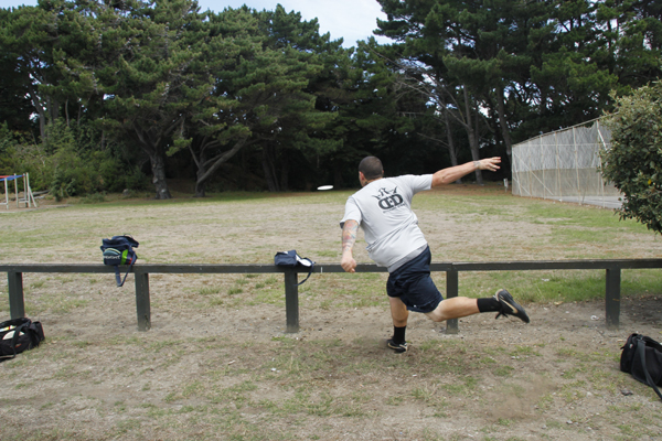 Seitdem haben sie ziemlich viel gezockt, so viele Turniere wie nur irgend möglich gespielt und ihren eigenen 18 Loch Kurs namens Waitas in Waitarere Beach eingerichtet, dementsprechend gut spielen sie auch. (Ausserdem ist in Levin selbst noch ein weiterer Objekt-Kurs namens Dog Park, der Name ist eher irreführend, es ist ein sehr gepflegter Park mit gemähtem Rasen, Hunde habe ich nur zwei gesehen). Der grossartige Waitas Kurs ist komplett Par 3 und bietet neben langen Bahnen auch einige an sich eher kurze Löcher mit schwierig positionierten Körben zwischen Bäumen und Sträuchern, manchmal gibt es nur eine erschreckend enge Gasse als einzigen Weg zum Korb, „it´s a mental game, it´s all in your head“. Andere Körbe stehen auf räumlich stark begrenzten Anhöhen, das Ziel zu verfehlen kann fatal sein, der Abhang ist oft nur zwei Schritte vom Korb entfernt. Natürlich gibt es in Strandnähe auch viel Wind, die Sonne brennt erbarmungslos und wir kühlen uns nach angenehmen Runden im super erfrischenden Südpazifik ab.