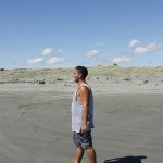 Das Strandhaus liegt direkt hinter den Dünen, es sind vielleicht 150 m bis zum ungefähr 40 km langen und superbreiten Strand. Ausser 90 Mile Beach in Northland ist es der einzige mit Autos befahrbare Strand, trotzdem wird es nie stressig, es gibt einfach genug Platz für Alle. Das Wasser ist tiefblau, schön kühl aber nicht zu kalt. Es ist einfach grossartig in angenehmster Gesellschaft am Strand ein paar Scheiben zu werfen, im Wasser herumzuplantschen und danach zum Sonnenuntergang den BBQ-Grill anzuwerfen.