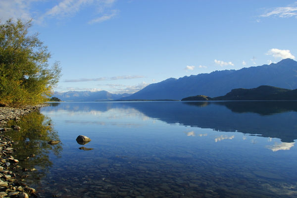 Nigel und ich fahren spätnachmittags von Queenstown die Uferstrasse am Lake Wakatipu bis Glenorchy und dann noch mal ungefähr 20 km weiter westlich bis zum Ziel nach Paradise in der Nähe des Dart River. Nigel hat ein Zimmer in Paradise reserviert, ich übernachte knappe 600 m weiter im Van tatsächlich an einem Ort namens „Garden of Eden“.