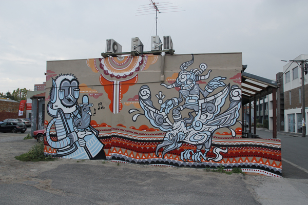 Montag vormittag bin ich in Melbourne gelandet, Fergie, Zac und Eliott haben mich wieder zu sich nach Hause in Fitzroy eingeladen. Melbourne ist auch bei nicht sooo gutem Wetter ziemlich prima, es gibt viel gut gemachtes Grafitti und teilweise Banksyesque Street Art, ausserdem scheint die Stadt bei geschätzten 20000 Bands die Musikhauptstadt des Planeten zu sein. Abends sehen wir für umme zwei rockige und super krachende Indiebands in einem rappelvollen Laden namens „The Worker´s Club“, not too shabby for a monday.