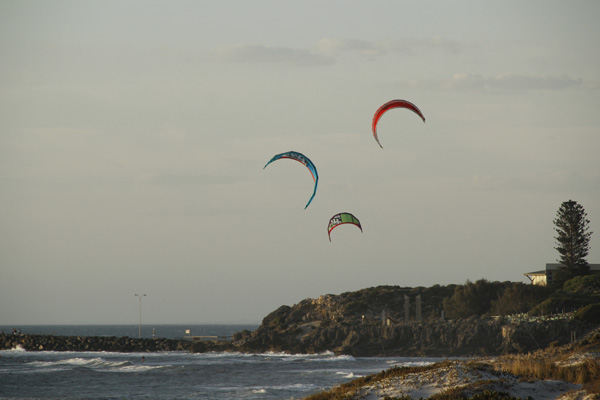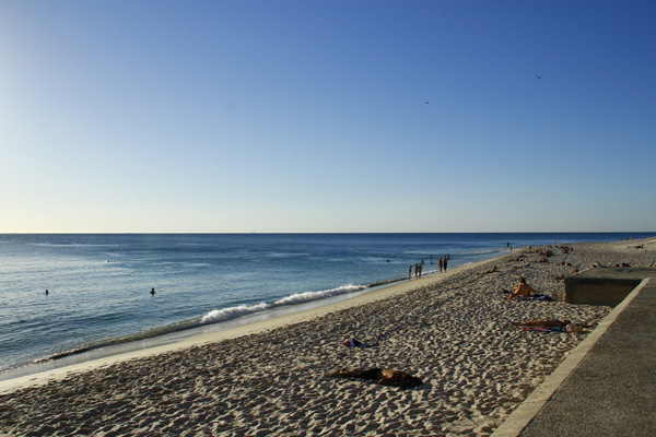 Kitesurfen ist hier sehr populär, die Wellen sind angenehm und das Wasser glasklar, in den Bäumen kreischen kleine Vögel namens Willie Wagtail. Man muss ein bisschen mit den Strömungen aufpassen, aber hey, für einen Stadtstrand kann hier niemand meckern, das Schwimmen macht Spass, es lässt sich hier wirklich ganz arg prima aushalten.