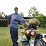Samstag frischt der Wind ein bisschen auf, der Himmel sieht manchmal bedrohlich aus, aber das Wetter hält. Auch sonst passt alles, das Essen ist günstig und schmeckt gut, die Stimmung ist 1a, Ladies und Gentlemen spielen parallel zwei vergnügte Runden. Abends wird der Grill angeschmissen, der Himmel öffnet seine Pforten ein wenig — wir sind der Meinung „es ist nur eine Husche“ und spielen noch die Bahnen 12 bis 18 in einem grossen Doubles Flight. Letztendlich doch ganz gut durchnässt setzt mich Greg in Kreuzberg ab, was für ein prima Turnier.