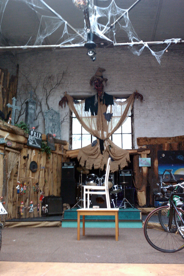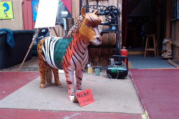 Eine Unperson hat in feigster Absicht nachts am Provinz-U-Bahnhof Haselhorst das Hinterrad meines Uralt-Mountainbikes kaputtgetreten. So rollt das Rad leider nicht mehr wirklich. In der Mittagspause habe ich auf Eiswerder um die Ecke vom Büro das Künstlerkollektiv „Die Inselspinnen“ entdeckt und lasse dort das Hinterrad künstlich richten. Crazy.