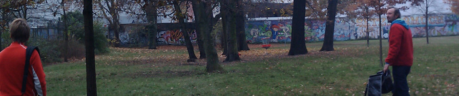 Am Schlesischen Busch (das ist kurz hinter Vor dem Schlesischen Tor) steht nicht nur der alte Grenzwachturm, hier ist der erste formidable Kreuzberger Disc Golf Kurs diesen Herbst eröffnet worden. Der schicke Kurs ist temporär, bietet grosse, tentakelige Bäume, schier unsichtbare superdünne Äste in langen Gassen und enge Fairways. Durch geschicktes Basket-placement entstehen ganz schnell 18 Bahnen, der mobile MachLite-Korb muss dafür nur drei Mal bewegt werden.