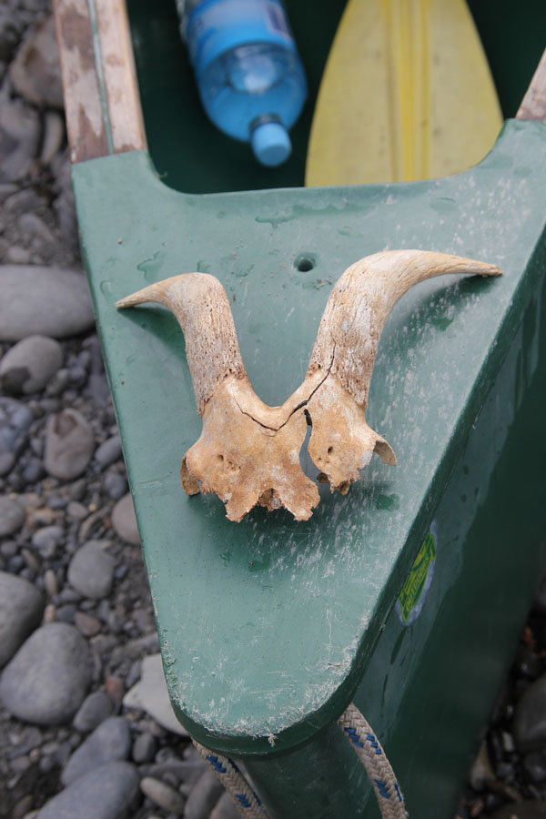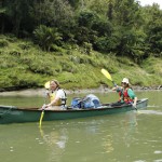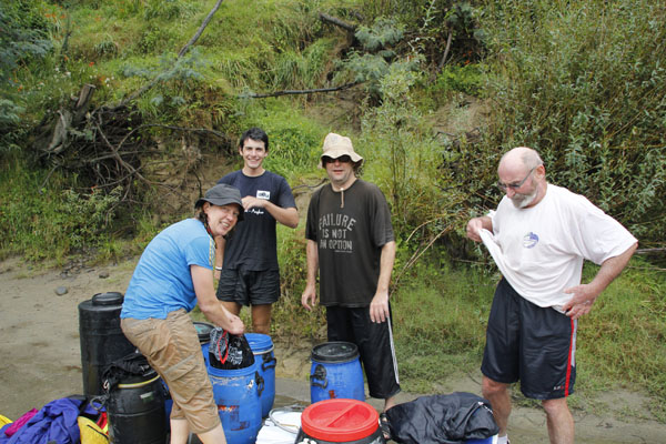 Am nächsten Morgen geht es auf das letzte Teilstück samt ein paar relativ einfachen Stromschnellen. Pete, Earnest und ich helfen Jörg und Moni ihr gesunkenes Kanu wieder aus dem Wasser zu ziehen und vom selben zu befreien.