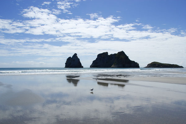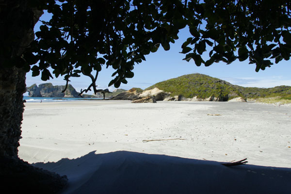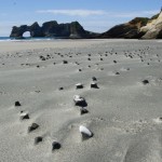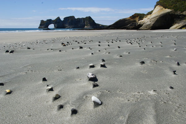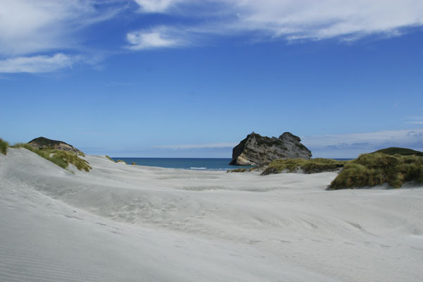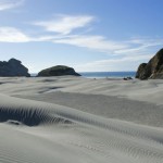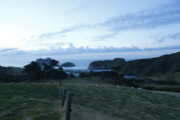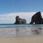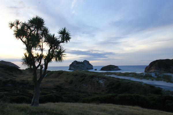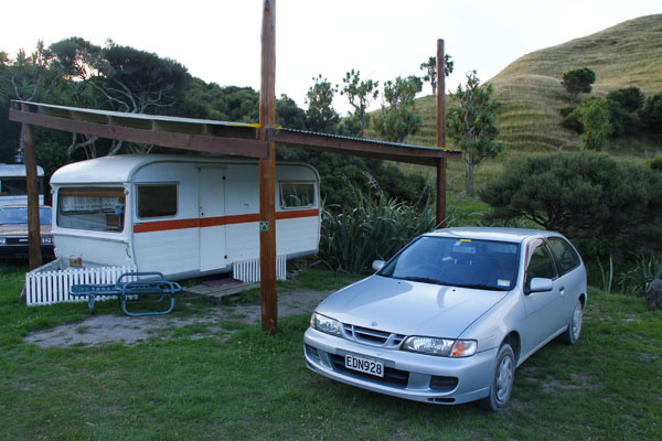 Ich fahre von Picton über Nelson durch die Takaka Hills nach Golden Bay über Onekaka, Collingwood, Pakawau und Puponga in Richtung Wharariki Beach und Farewell Spit und komme kurz vor Sonnenuntergang an. Letztes Jahr habe ich hier zwei Tage verbracht…und muss diesen wirklich unglaublich magischen Ort einfach noch ein Mal besuchen. Mittlerweile ist der sehr angenehme und von Dion mit einem ökologischen Gesamtkonzept versehene Campingplatz um ein Feuerwehrauto und eine funktionierende Espressomaschine (Yippiyayeah!) reicher, ich komme zu allem Überfluss auch noch im schicken 70er-Jahre-Wohnwagen unter.