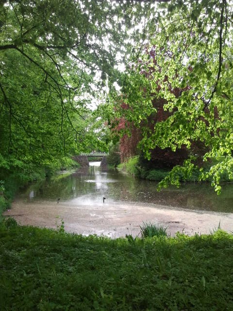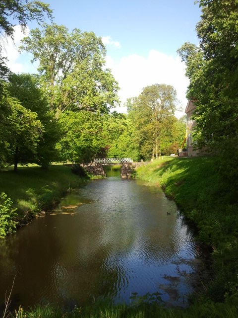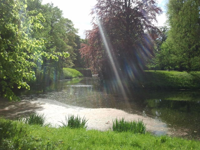 Der schöne Schlosspark ist von Kanälen durchzogen, hat einen Teich (oder ist das schon ein See?) samt Insel und eine für Grossstädter exotische Tierwelt, namentlich Störche und Rehe, zu bieten.