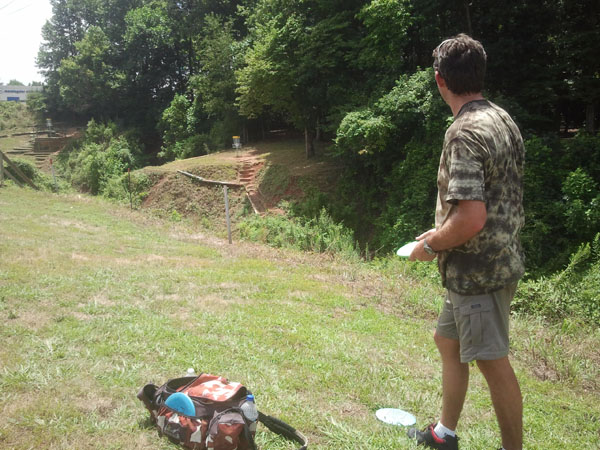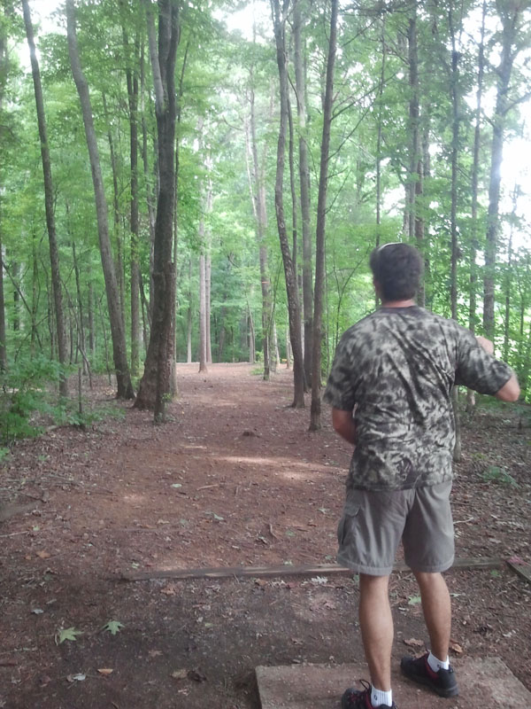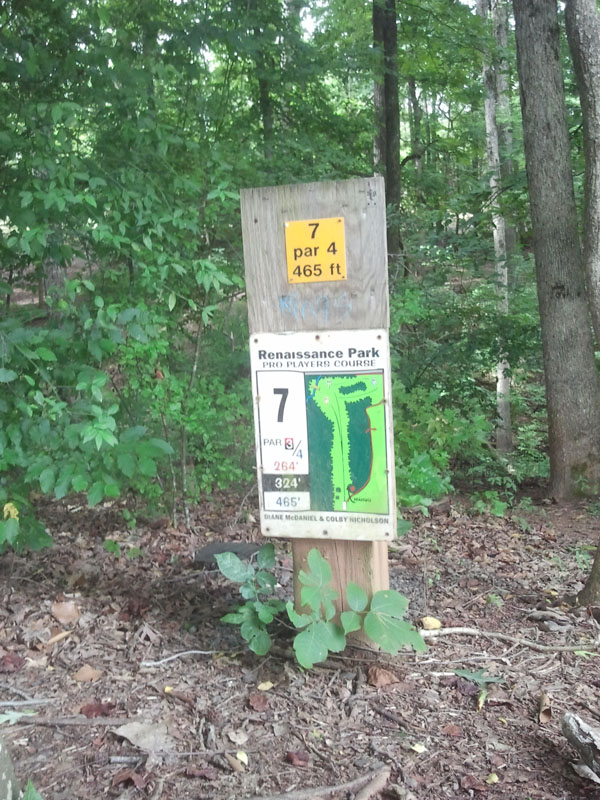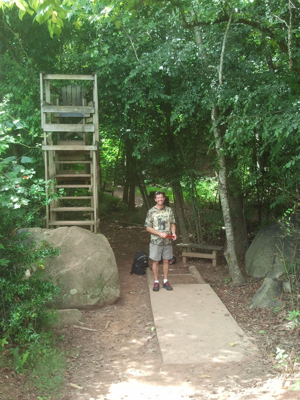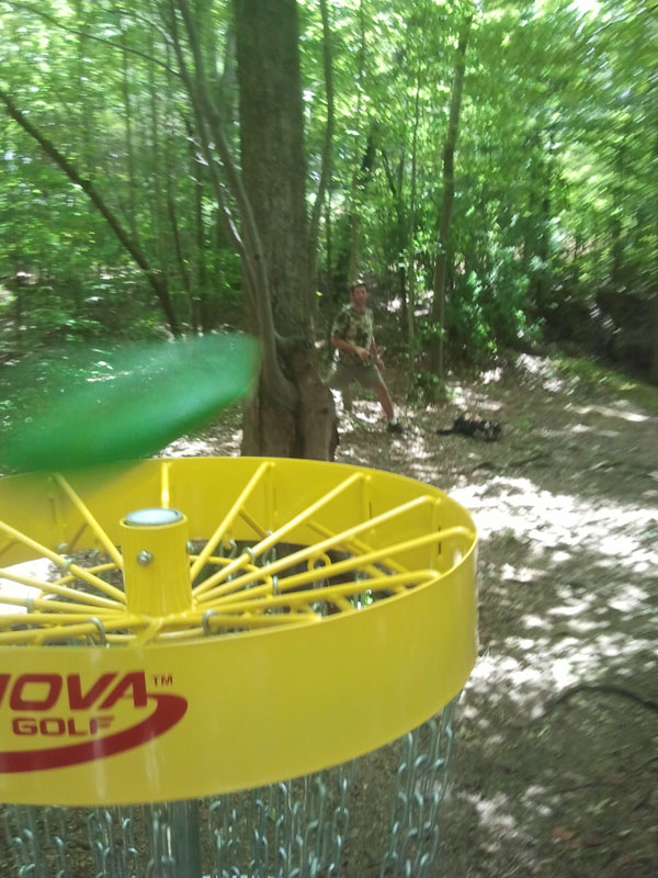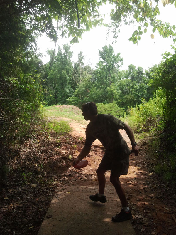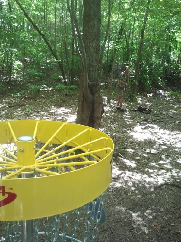 Heute Morgen haben Simon und ich den Renaissance Park Disc Golf Course ausprobiert. Der 18-Loch-Kurs ist einfach ein superschickes Monster. Der Parcours fordert an sich ganz schön viel, ausserdem ist es dazu wirklich ziemlich heiss und die Luftfeuchtigkeit echt wahnsinnig hoch. Wir schütten das Wasser literweise in uns rein. 10 Sekunden später sind wir schon wieder durstig. Die Pole-holes sind zwischen 75 und 340 Meter lang, Par 3, 4 und 5. Der Kurs ist voller krasser Höhenunterschiede und teilweise echt eisenhart positionierter Körbe. Bei einigen der vielen Par 4-Bahnen ist es wirklich wichtig, ganz schön genau eine relativ kleine Lay-up-Zone zu treffen. Ein grossartiger Parcours.