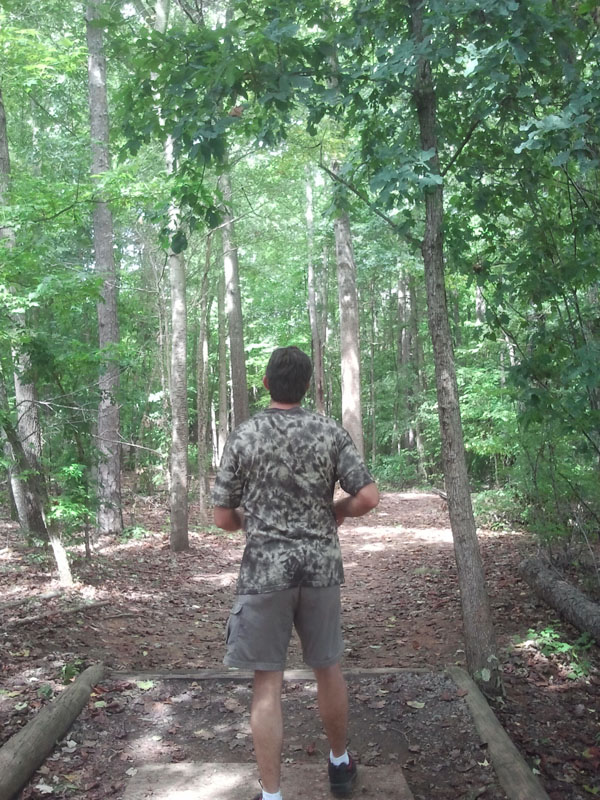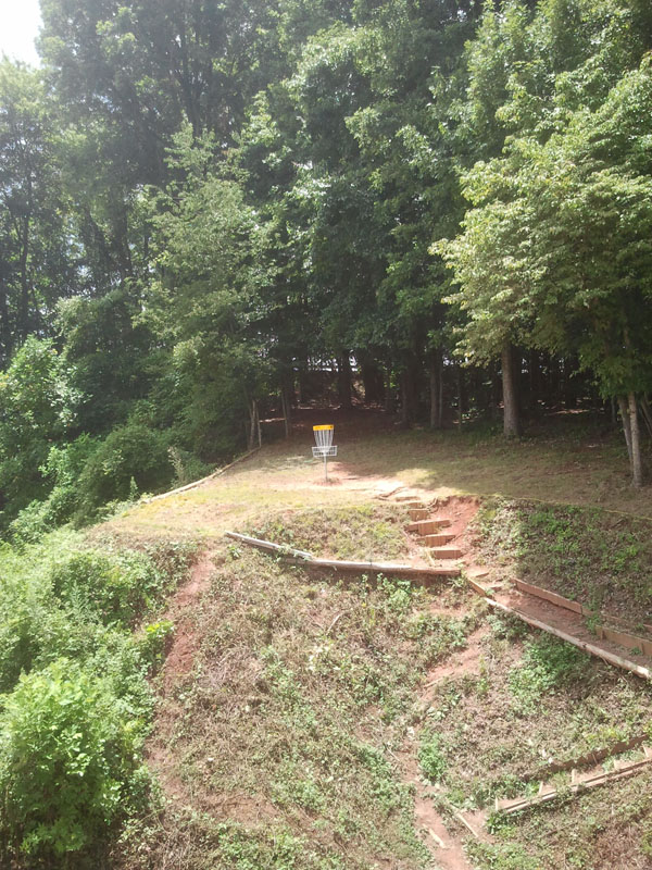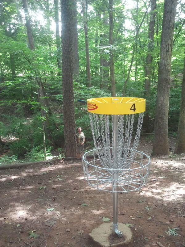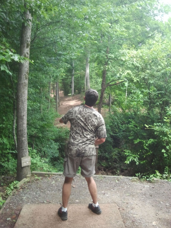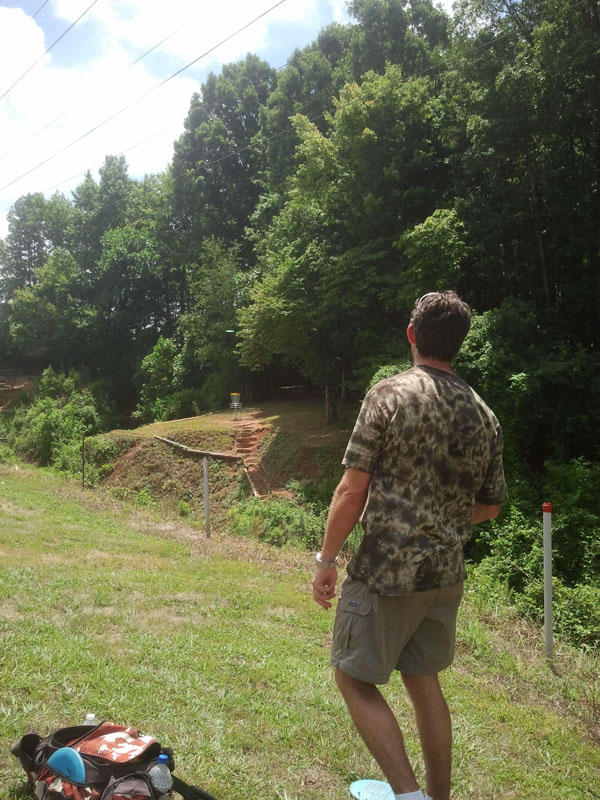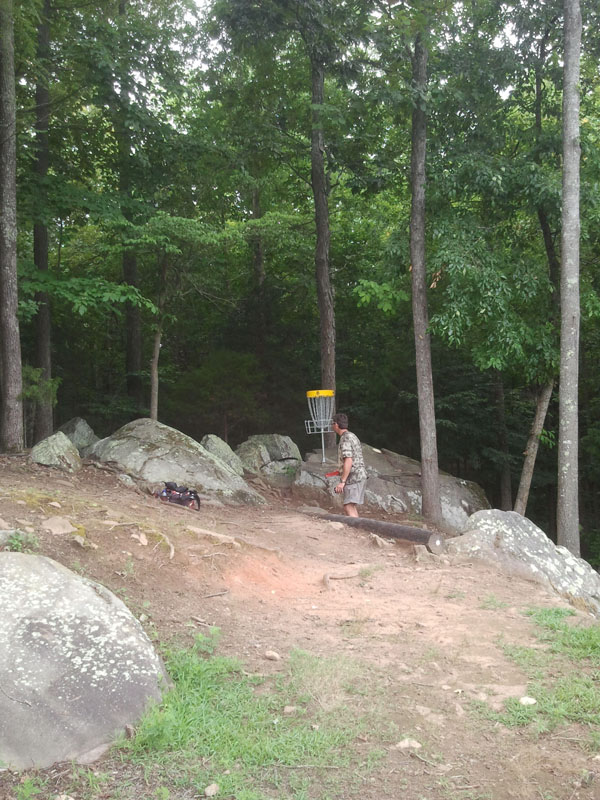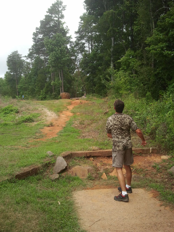 Heute Morgen haben Simon und ich den Renaissance Park Disc Golf Course ausprobiert. Der 18-Loch-Kurs ist einfach ein superschickes Monster. Der Parcours fordert an sich ganz schön viel, ausserdem ist es dazu wirklich ziemlich heiss und die Luftfeuchtigkeit echt wahnsinnig hoch. Wir schütten das Wasser literweise in uns rein. 10 Sekunden später sind wir schon wieder durstig. Die Pole-holes sind zwischen 75 und 340 Meter lang, Par 3, 4 und 5. Der Kurs ist voller krasser Höhenunterschiede und teilweise echt eisenhart positionierter Körbe. Bei einigen der vielen Par 4-Bahnen ist es wirklich wichtig, ganz schön genau eine relativ kleine Lay-up-Zone zu treffen. Ein grossartiger Parcours.
