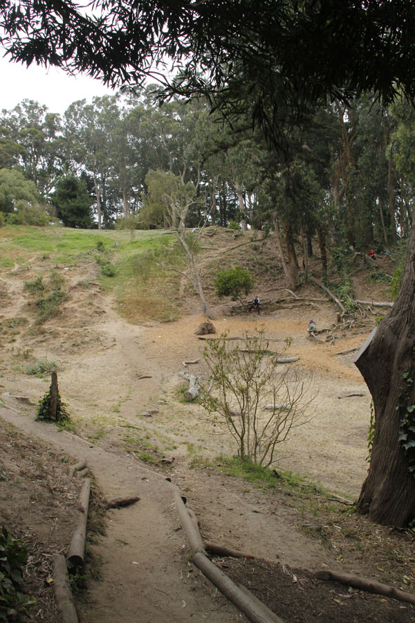 Dienstags um 1730 findet das wöchentliche Doubles-Turnier im Golden Gate Park statt. Patrick Brown und der San Francisco Disc Golf Club haben offensichtlich sehr viele Arbeitsstunden investiert, der Parcours ist ganz einfach superschick und tiptop gepflegt. Alle Bahnen haben drei bis vier alternative Korbpositionen, es gibt Mandos, OBs wo sie nötig sind, Höhenunterschiede, jede Menge Bäume und cool bis krass positionierte Körbe.
