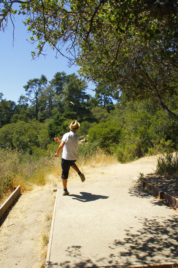 Ich besuche Justin am letzten Sonntag im Juli in Boulder Creek. Wir fahren zusammen mit seinem Sohn Skyler, Bandkollege Pete und Kumpel Kima nach Santa Cruz und haben das grosse Vergnügen bei perfektem Wetter den 1983 von Disc Golf Hall of Fame Member Tom Schott gestalteten DeLeveaga Disc Golf Course zu spielen.